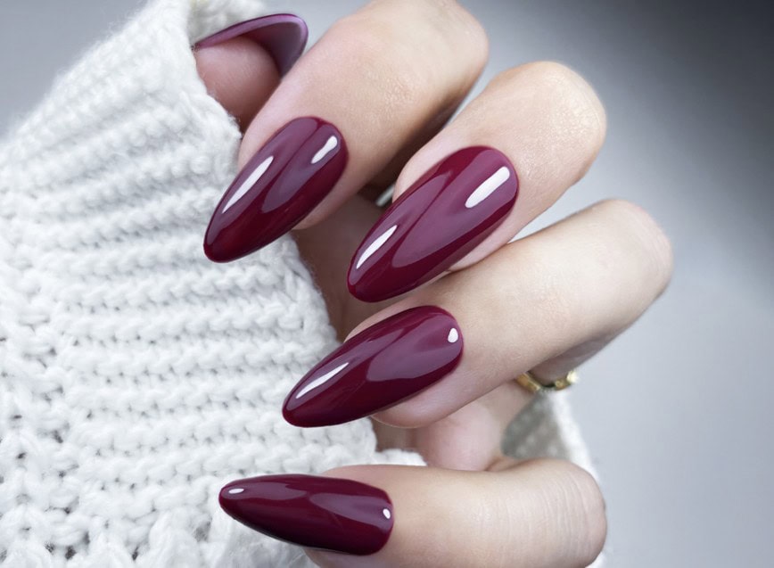 Weinrote Nägel gelten als klassische Wahl zu Weihnachten (Quelle: misteromilano.pl)